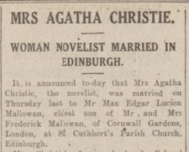 There are likely a few reasons why the 1930s proved so fruitful for Agatha. Her marriage to the archaeologist Max Mallowan at St Cuthbert’s Church in Edinburgh in September 1930, was to herald a new beginning for Agatha’s personal life, and a happy marriage that would last for the rest of her life. Her travels on the Orient Express and to Baghdad at the end of the previous decade, the trip on which she met Max, undoubtedly put some spark back into Agatha after the bruising ordeal of her divorce from Archie. She came home from that journey with a new love, and a belief that she could make a living for herself as a serious writer. This belief didn’t stem from ego, but from a necessity. Money.